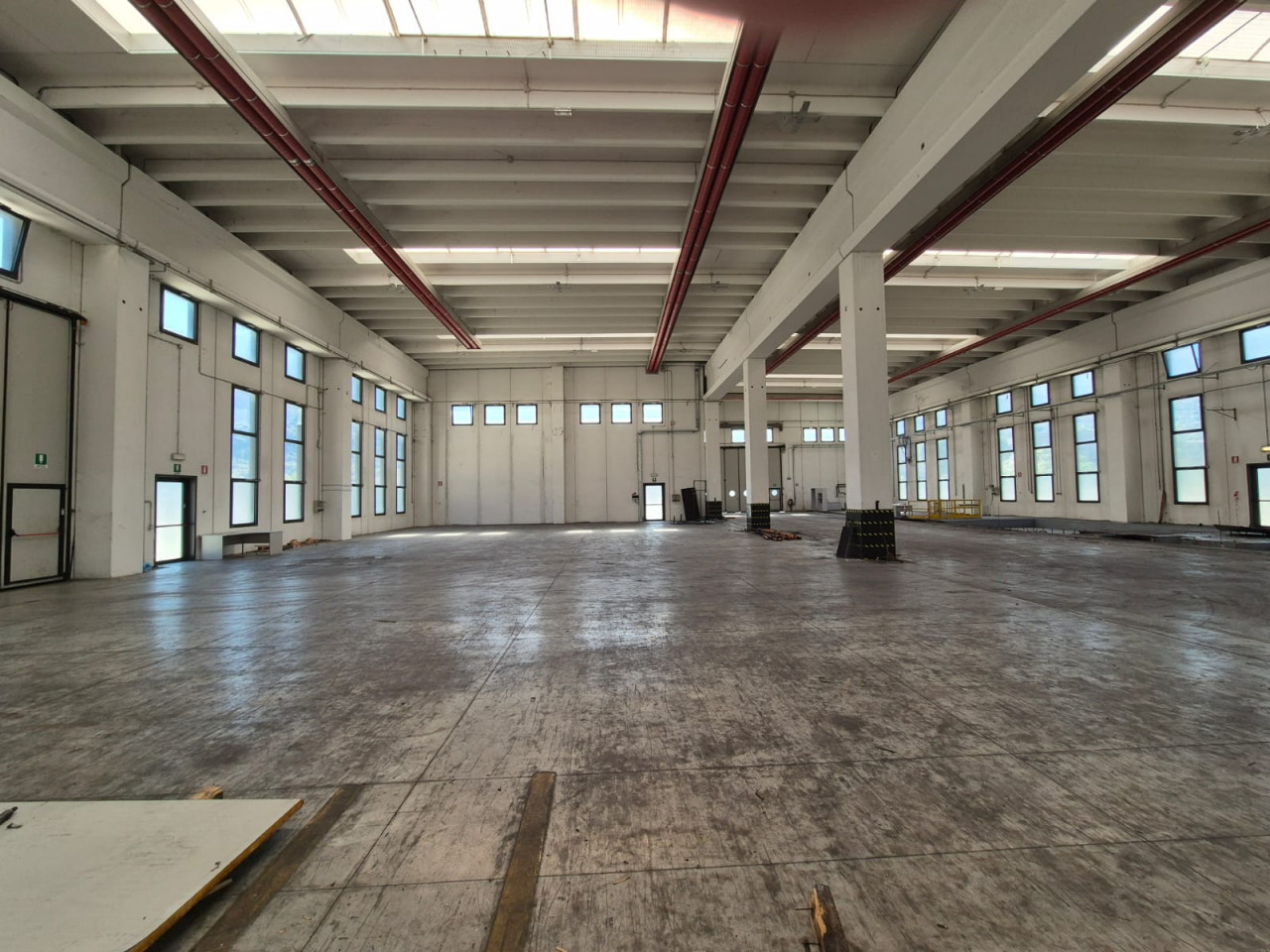 Sono presenti portoni industriali scorrevoli adatti all'accesso dei mezzi pesanti e delle merci, oltre a colonne strutturali ben posizionate che non ostacolano le manovre interne. Il capannone dispone inoltre di impianto antincendio già installato e uscite di sicurezza conformi alle normative vigenti.
